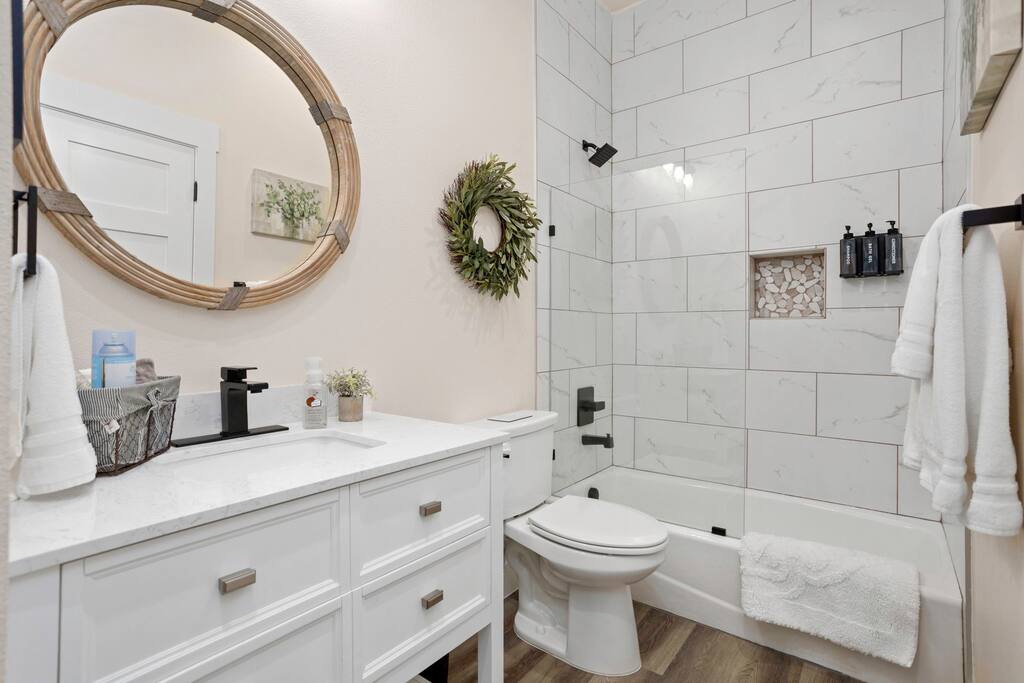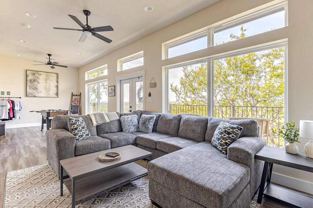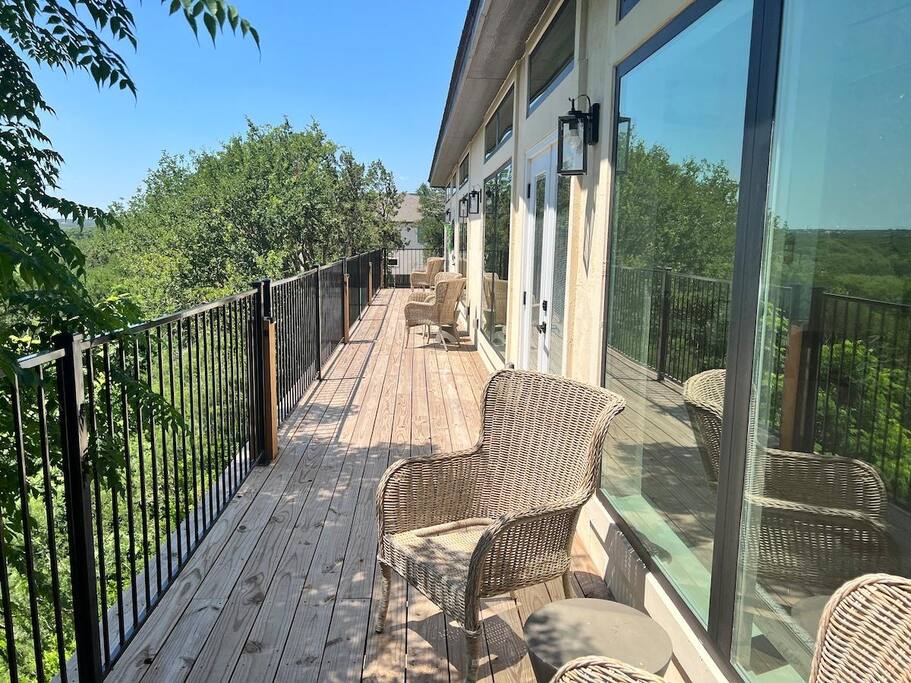 Step back in time with a visit to historic Gruene, TX! Just minutes from your stay, this charming district is home to the famous Gruene Hall—the oldest dance hall in Texas—along with boutique shops, wineries, and fantastic dining options. The iconic water tower and rustic architecture create a picturesque setting for an unforgettable day of exploring. Take in breathtaking views from this spacious balcony, the perfect spot for morning coffee or evening relaxation. Furnished with comfortable wicker seating, this outdoor retreat offers a peaceful escape surrounded by lush greenery and fresh air. Whether you’re enjoying a quiet moment alone or a glass of wine with friends, this serene setting is a highlight of your stay.