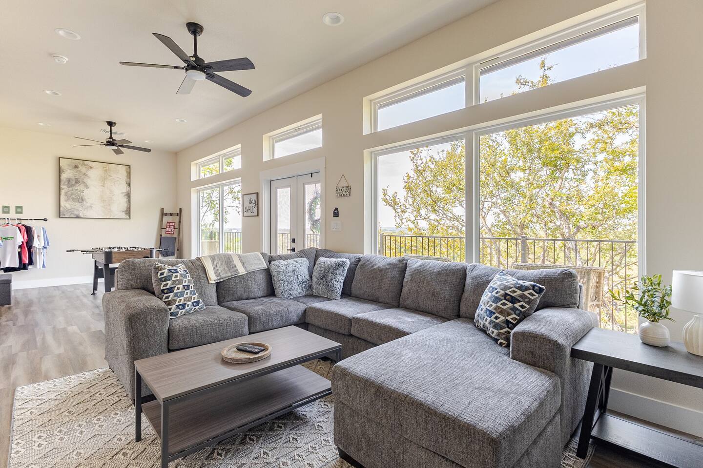 Comfort & Convenience for Every Guest This spacious 6-bedroom, 6-bathroom retreat is thoughtfully curated to host up to 12 guests in total comfort. You’ll enjoy: ✅Access to the Guadalupe River ✅A fully stocked kitchen perfect for home-cooked meals or riverside snacks ✅Private balconies on both floors with serene river views ✅River Front ✅Hotel-style amenities ✅Fast Wi-Fi ✅Central A/C ✅Outdoor seating ✅Huge Outdoor Covered Patio ✅Comfy beds, plush linens ✅ Walking Distance to Gruene Hall and Restaurants ✅ Luxurious Furniture ✅ Dedicated bathroom for each bedroom ✅ Smart TVs in each room ✅ Outdoor BBQ ✅ Washer and Dryer ✅ Private Parking ✅ Game Room/Foosball Table Beautiful luxurious river front home located in the middle of Gruene! 3 spacious bedrooms with each having their own dedicated full bathroom! Huge outdoor entertaining area. Book Now!