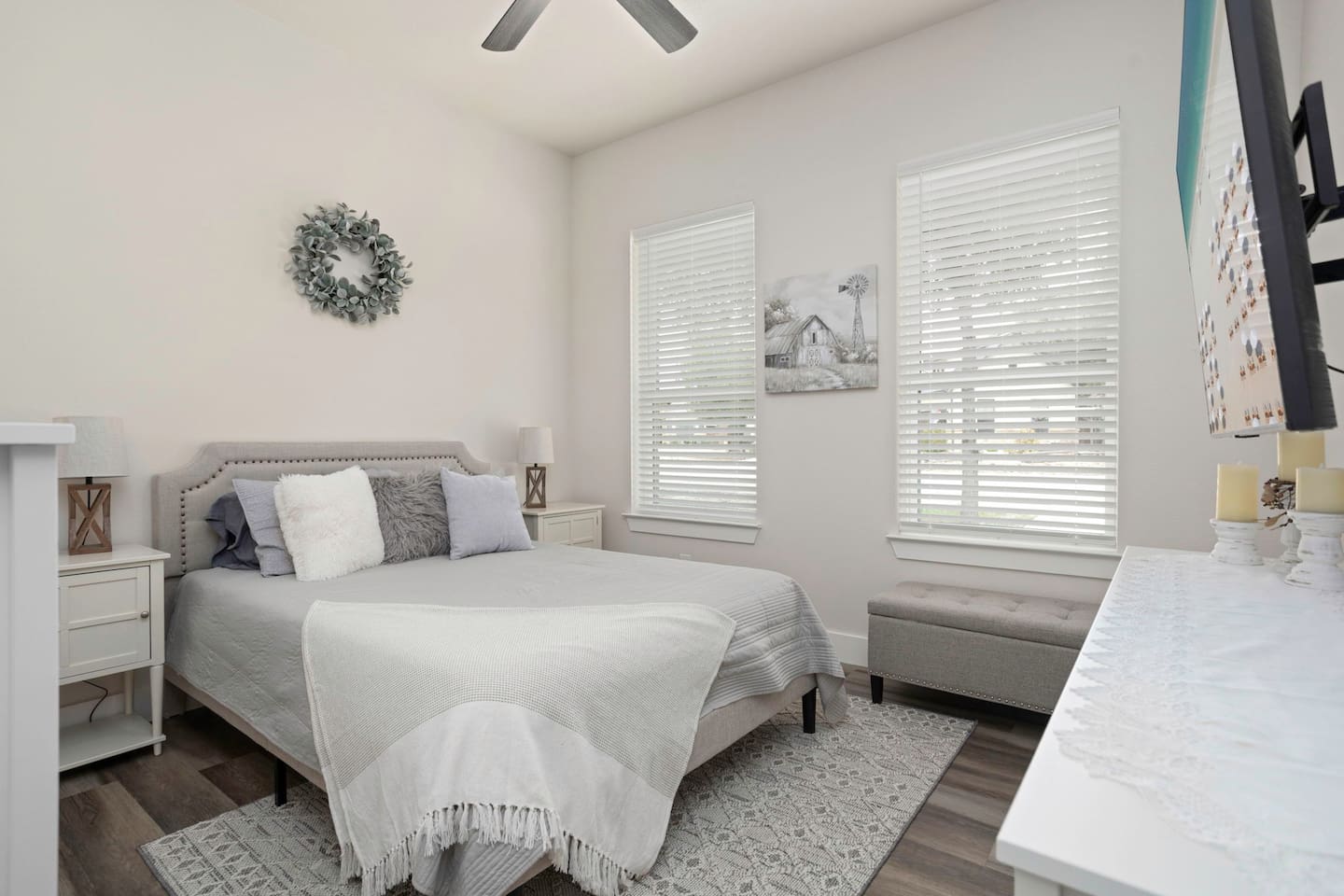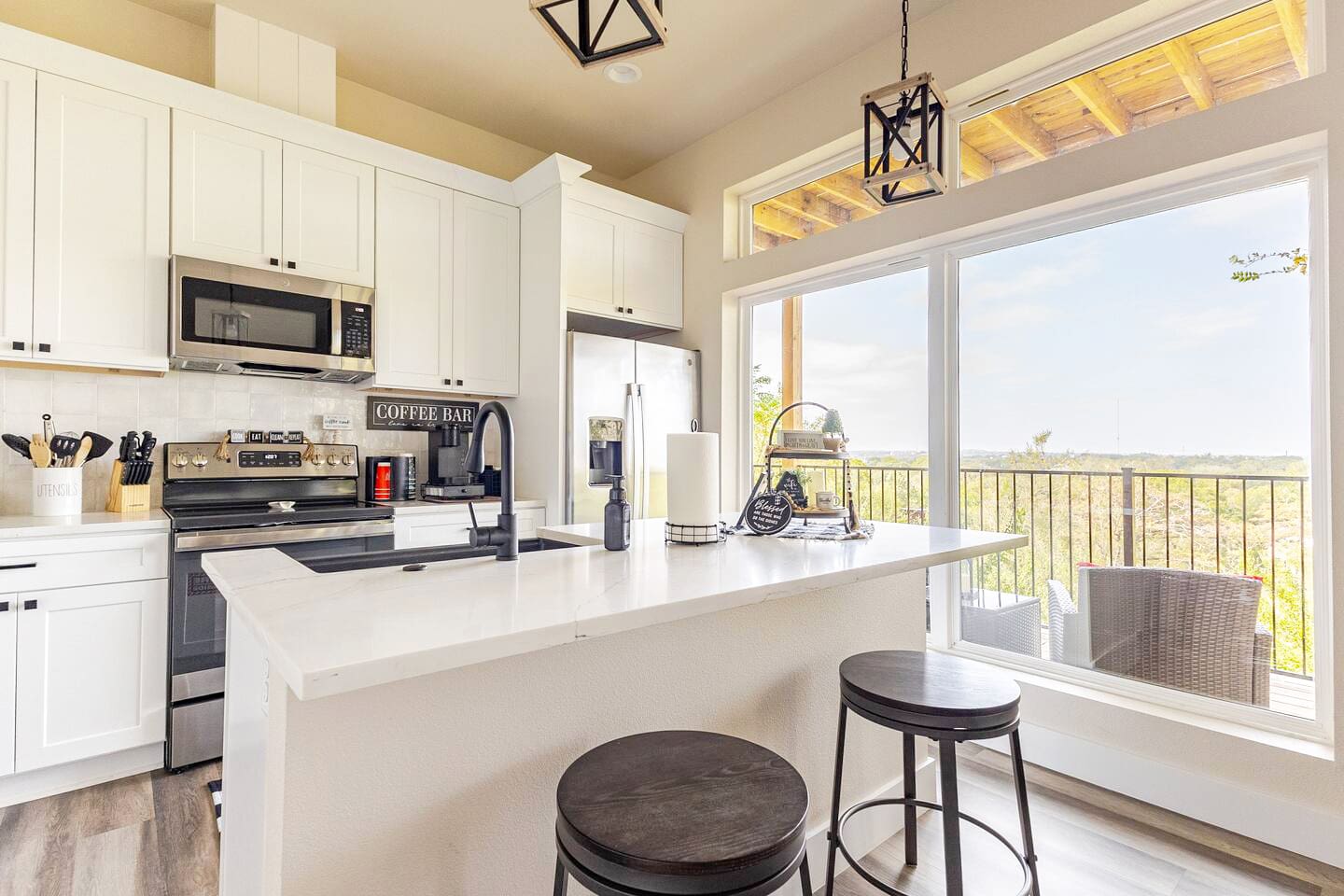 These luxurious 6-bedroom, 6-bathroom waterfront townhomes comfortably accommodate 12 guests. Located just 0.1 miles from historic Gruene Hall, this property offers direct Guadalupe River access, serene river views from private balconies, and a fully equipped kitchen. Perfect for family retreats, romantic getaways, or wedding groups seeking the best of the Texas Hill Country.