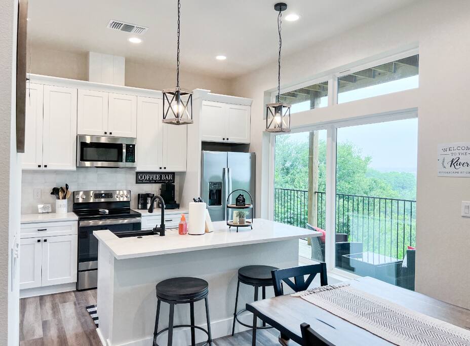 🛏️ Comfort & Convenience for Every Guest This spacious 6-bedroom, 6-bathroom retreat is thoughtfully curated to host up to 12 guests in total comfort. You’ll enjoy: -Access to the Guadalupe River -A fully stocked kitchen perfect for home-cooked meals or riverside snacks -Private balconies on both floors with serene river views -Three full bathrooms for added privacy and convenience -Comfy beds, plush linens, and hotel-style amenities -Smart TVs, fast Wi-Fi, and central A/C -Grill and outdoor seating for relaxing evenings under the stars Whether you're sipping morning coffee on the balcony or winding down with a sunset BBQ, this townhome makes it easy to relax, recharge, and reconnect.