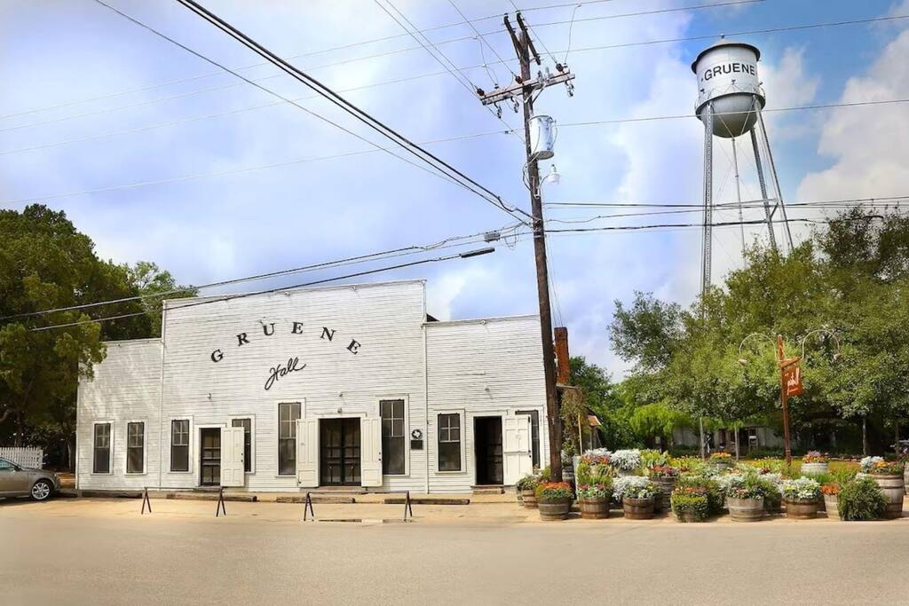 Located in the heart of the Gruene Historic District. The early 20th-century boll weevil blight put a stop to the banking, ginning, and shipping successes in Gruene, founded in 1850. It was a ghost town. Then, in 1974, Chip Kaufman, an architecture graduate student at the University of Texas, got out of his kayak at Gruene Crossing and began poking around. Kaufman found several historic buildings still standing: a cotton gin, grist mill, and water tower, and the now-famous Gruene Hall. Kaufman discovered later that these buildings were slated for demolition and were to be replaced by a 138-acre housing development. Working with both the Texas Historical Commission and the new owner of the land, Kaufman was able to save these buildings and put Gruene on the National Register of Historic Places. Today, tens of thousands of visitors a year come to Gruene to see the 1872 Henry Gruene Mansion, the restored cotton gin, and, of course, the venerable Gruene Hall β where boots have scooted to the tunes of Texas music royalty like Willie Nelson and George Strait.