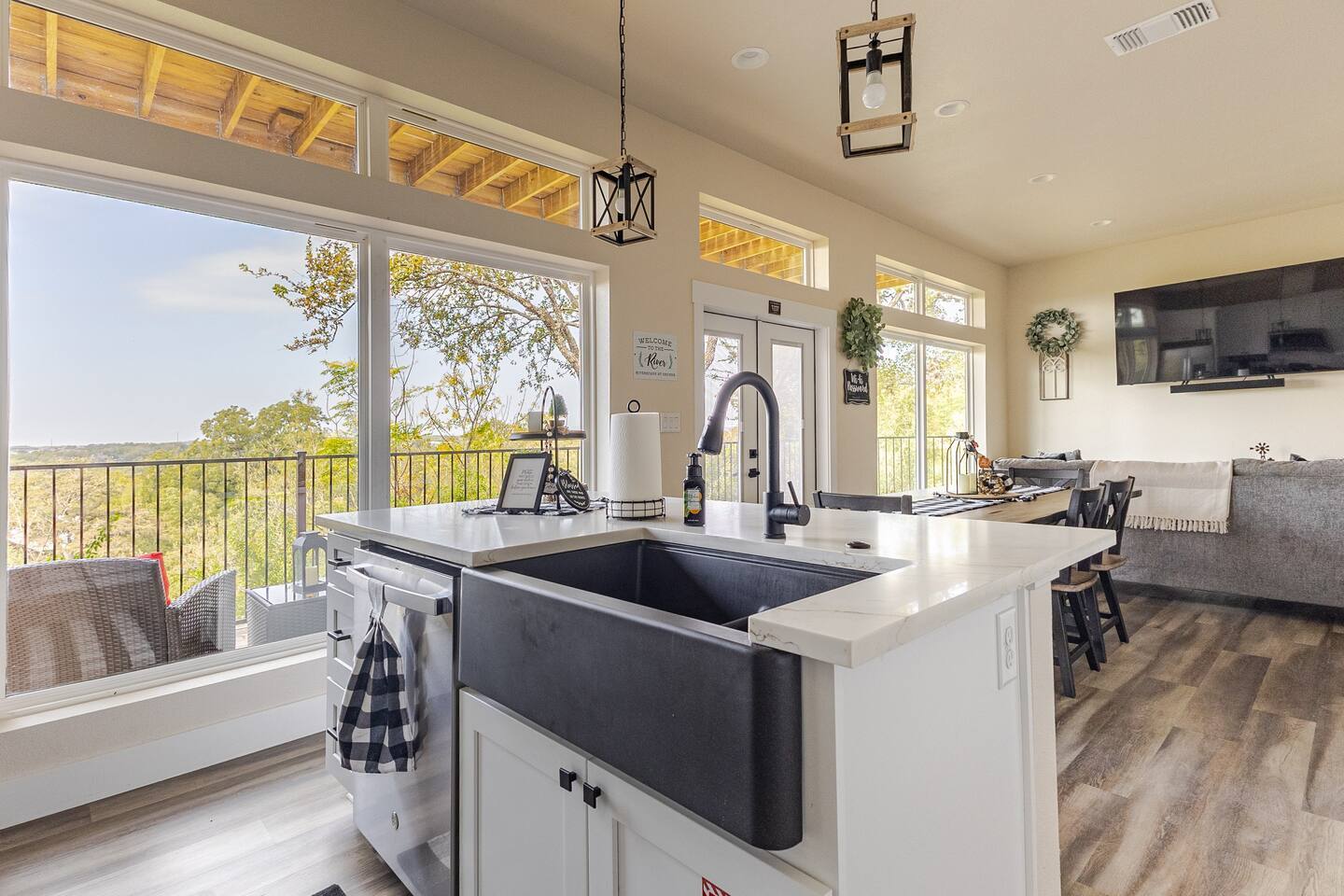 Welcome to The Riverscape at Gruene Indulge in the best of Texas Hill Country at The Riverscape at Gruene, a luxurious two-story waterfront townhome nestled just 0.1 miles from the legendary Gruene Hall — the oldest dance hall in Texas. Whether you're having a relaxing family retreat, a romantic getaway, or a group trip for a wedding or event, this impeccably designed home offers the perfect blend of style, comfort, and location.
